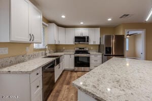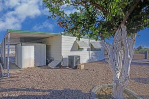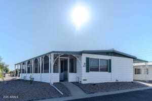 ON LEASED LAND: Welcome home to this absolutely stunning remodel!!! Completely remodeled with drywall, new kitchen, bath, flooring, lighting and more. As you enter thru the screened in Arizona room into the home you will get the wow factor. Open floor plan great for entertaining. Large kitchen island overlooking the front room. 2 primary bedrooms with split floor plan. Both bedrooms have walk in closets and their own bathrooms. Laundry room inside. Large carport for parking and a storage shed. New landscape as well. Located in a 55 plus age restricted gated community. New updated pool, spa, and the rest is being updated now and will include pickleball, dog park, and much more.