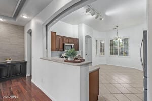 Beautiful 3-bed, 2-bath home in Avondale, with a heated POOL! Pebbletech only 2 years new. This home’s charm starts with a low-care landscape, a 2-car garage, & a front porch. The fabulous interior showcases tons of natural light, neutral paint, and tile & wood floors t/out. You’ll love the large living room paired with a stacked stone fireplace, coffered ceiling, recessed lighting, and French doors to the back! The eat-in kitchen boasts NEW SS appliances, contemporary lighting, plantation shutters, ample wood cabinetry, a pantry, and a 2-tier peninsula w/breakfast bar. The main bedroom has a large bay window, access to the patio and a full bathroom with dual sinks & a walk-in closet.