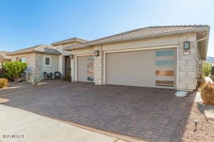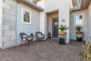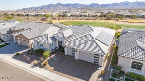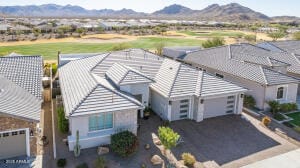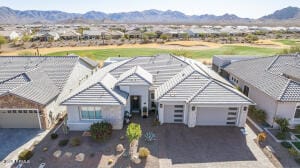 An absolute dream home and one of the finest homes in Festival! This HIGHLY UPGRADED Virtue Model on Copper Canyon’s Mountain #7 has great course views and SWEEPING MOUNTAIN VIEWS!! With over $285K in upgrades, pleasant surprises abound! From the home’s CONTEMPORARY street elevation, to an OWNED SOLAR SYSTEM, a 26′ deep 3 CAR GARAGE and an amazing BACKYARD PARADISE…..this home says WOW!! Interior amenities include spectacular 12′ tall KIEM Media Wall, Tile floors in the main areas, Bar with refrigerator, Kitchen with Shaker style Cabinets, Quartz Counters & Kitchen-aid Appliances. The HUGE covered Patio has edge-to-edge Travertine, Gas Fireplace, TV Lounge area, edge to edge electric Patio Shades. In addition, a built-in heated SPA, Outdoor Kitchen and additional Travertine patio.
