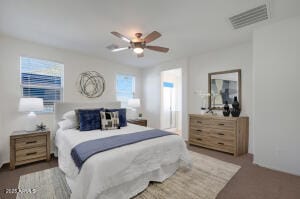 Welcome to this beautiful 4-bedroom, 3 bath home, featuring a spacious open floor plan perfect for modern living. The kitchen features stainless steel appliances, granite counters, staggered cabinets offering both style and functionality. New carpet in the bedrooms and family room that complements the freshly painted interior, creating an inviting atmosphere throughout. The primary suite is a true retreat with a luxurious ensuite that consists of a separate walk-in shower, soaking tub, double sinks, and an expansive walk-in closet. Step outside to the backyard, designed for entertaining with a custom bar area, built-in BBQ, and a relaxing spa. Home is Surrounded by stunning mountain views, the outdoor space provides the perfect backdrop for enjoying the beauty of the entire neighborhood.